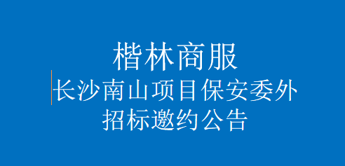 楷林商服南部大區(qū)南山項目保安委外招標(biāo)供方邀約公告我公司擬就楷林商務(wù)服務(wù)集團(tuán)南部大區(qū)南山項目保安委外招標(biāo)進(jìn)行供方邀請報名,茲邀請全國(長沙區(qū)域有實(shí)管項目)相關(guān)優(yōu)質(zhì)公司前來報名投標(biāo)?,F(xiàn)將有關(guān)事項說明如下:一、項目名稱:楷林商服南部大區(qū)南山項目保