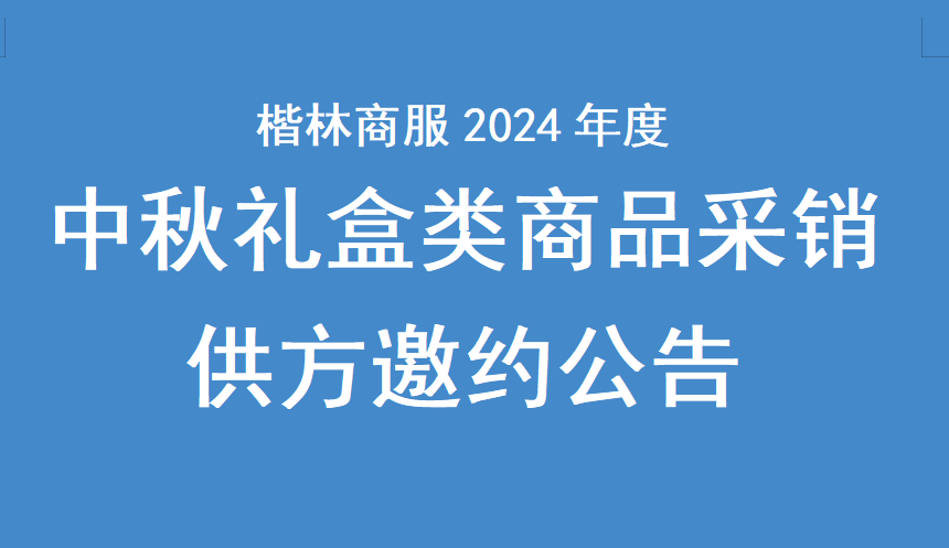 楷林商服2024年中秋禮盒類商品采銷招標(biāo)供方邀約公告我公司擬就楷林商服公司所屬物業(yè)服務(wù)項目的中秋商品采銷招標(biāo)進(jìn)行邀請報名,茲邀請有相關(guān)資質(zhì)的優(yōu)質(zhì)供應(yīng)商前來報名投標(biāo)。現(xiàn)將有關(guān)事項說明如下:一、項目名稱:楷林商服2024年酒水類采銷招標(biāo)邀約二、