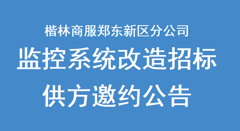 楷林商務(wù)中心北區(qū)監(jiān)控系統(tǒng)改造維修招標(biāo)供方邀約我公司擬就監(jiān)控系統(tǒng)改造維修招標(biāo)進(jìn)行邀請報名,茲邀請鄭州區(qū)域相關(guān)優(yōu)質(zhì)供應(yīng)商前來報名投標(biāo)。現(xiàn)將有關(guān)事項說明如下:一、項目名稱:楷林商務(wù)中心北區(qū)監(jiān)控系統(tǒng)改造維修招標(biāo)供方邀約。二、邀約主體:楷林商務(wù)服務(wù)集