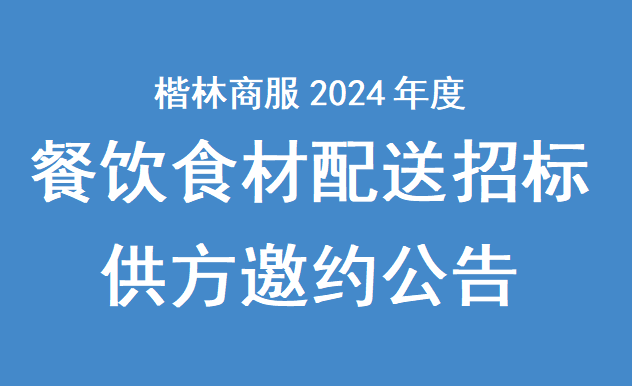 楷林商務(wù)服務(wù)集團(tuán)餐飲食材配送招標(biāo)供方邀約公告我公司擬就楷林商務(wù)服務(wù)集團(tuán)餐飲食材配送招標(biāo)進(jìn)行邀請報名,茲邀請有實(shí)力的相關(guān)優(yōu)質(zhì)供應(yīng)商前來報名投標(biāo)?,F(xiàn)將有關(guān)事項說明如下:一、項目名稱:楷林商務(wù)服務(wù)集團(tuán)餐飲食材配送招標(biāo)供方邀約二、邀約主體:楷林商務(wù)
